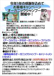 いつもオーガニックシャンプーのわんちゃんもまだ未体験のわんちゃんも、この機会を逃す手はないと思います!