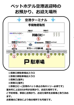ペットホテル空港送迎時のお預かり、お迎え場所